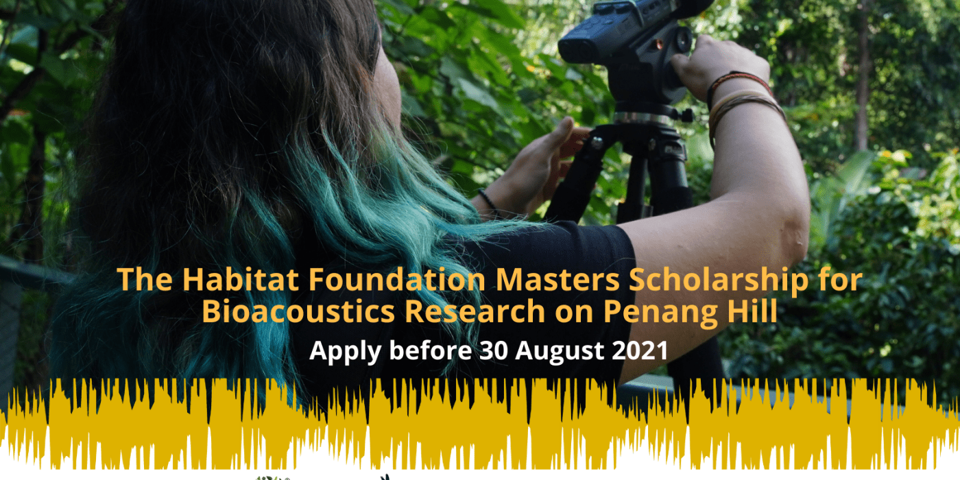 The Habitat Foundation is funding a Masters Scholarship for Research in Bioacoustics on Penang Hill which will be offered at the School of Biological Sciences (SBS), USM. The successful candidate will have their university registration and tuition fees covered, and receive a monthly stipend of RM1,000 for 24 months. Equipment and field costs will be provided by The Habitat Foundation.
